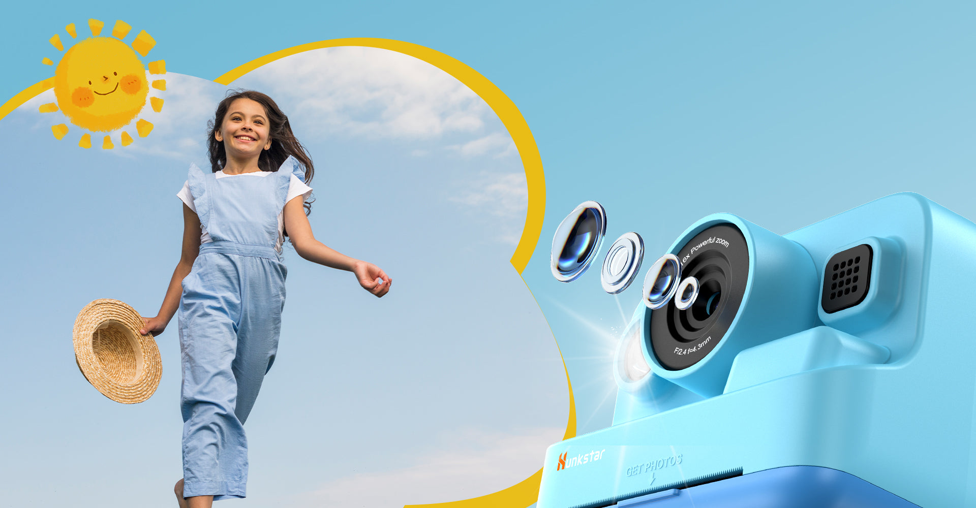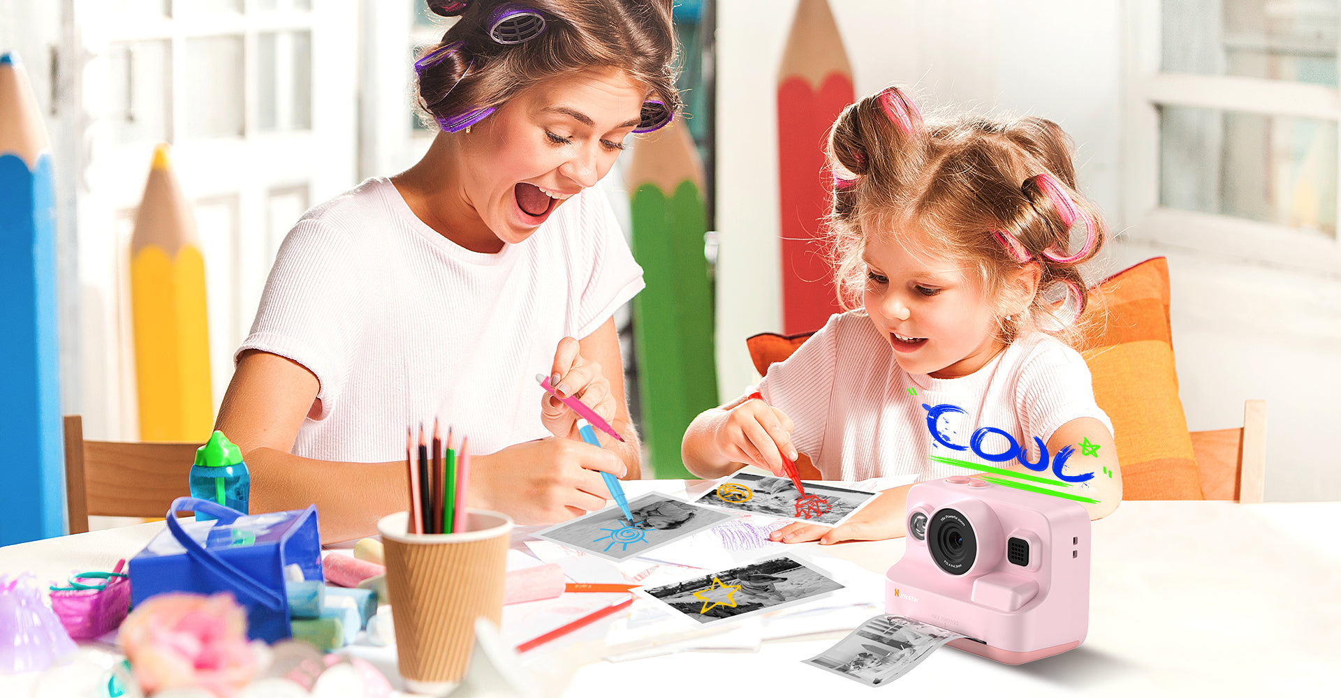 Turn black-and-white prints into colorful masterpieces with watercolor pens and stickers, inspiring creativity and artistic expression. Featuring an eco-friendly design and no ink waste, the HC200 instant camera for kids is both enjoyable and sustainable.
